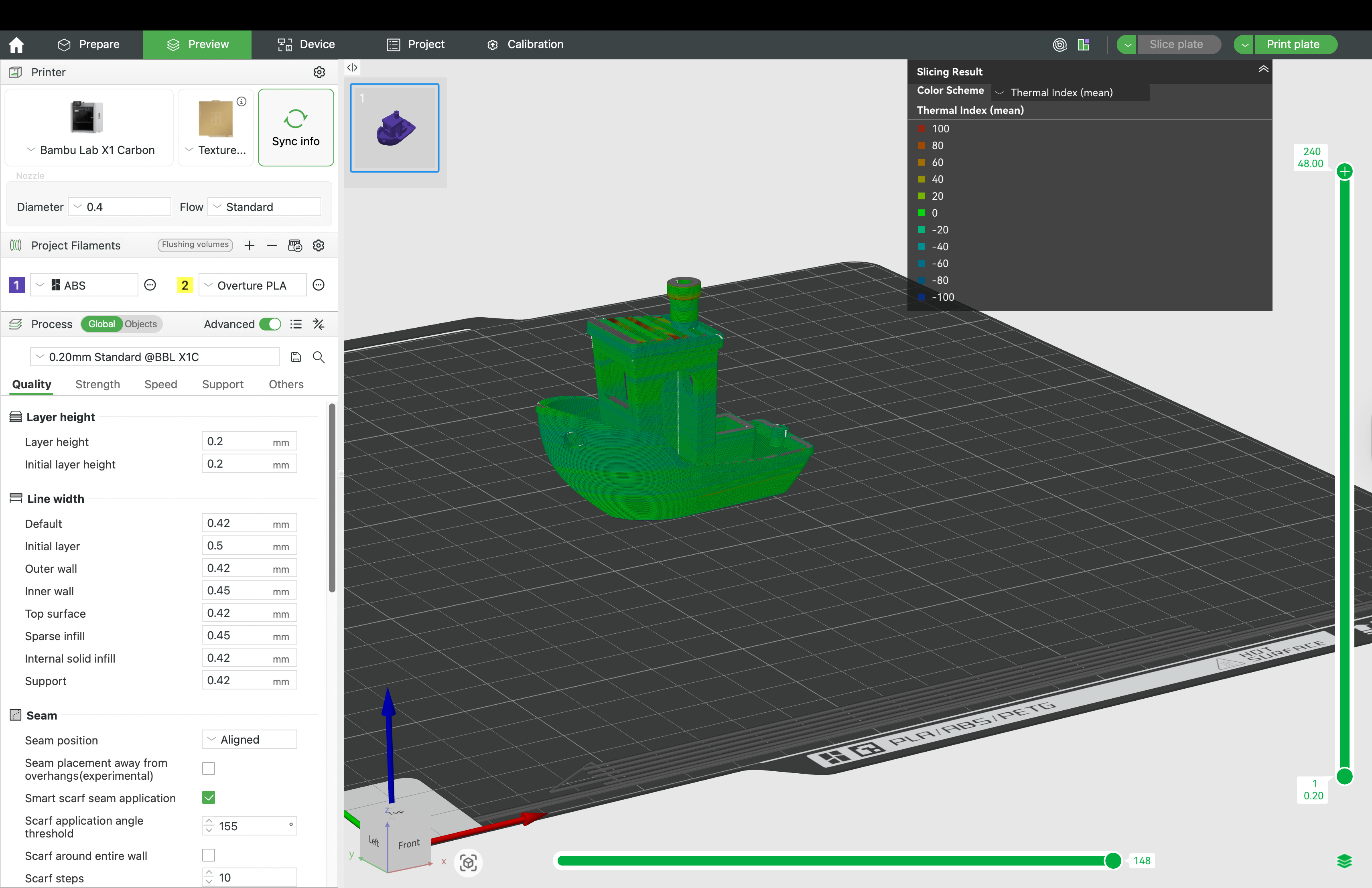 ℹ️ For printers with a chamber (e.g., the X1E), enter the chamber temperature. For those without a chamber (e.g., the P1P), enter the ambient air temperature.
