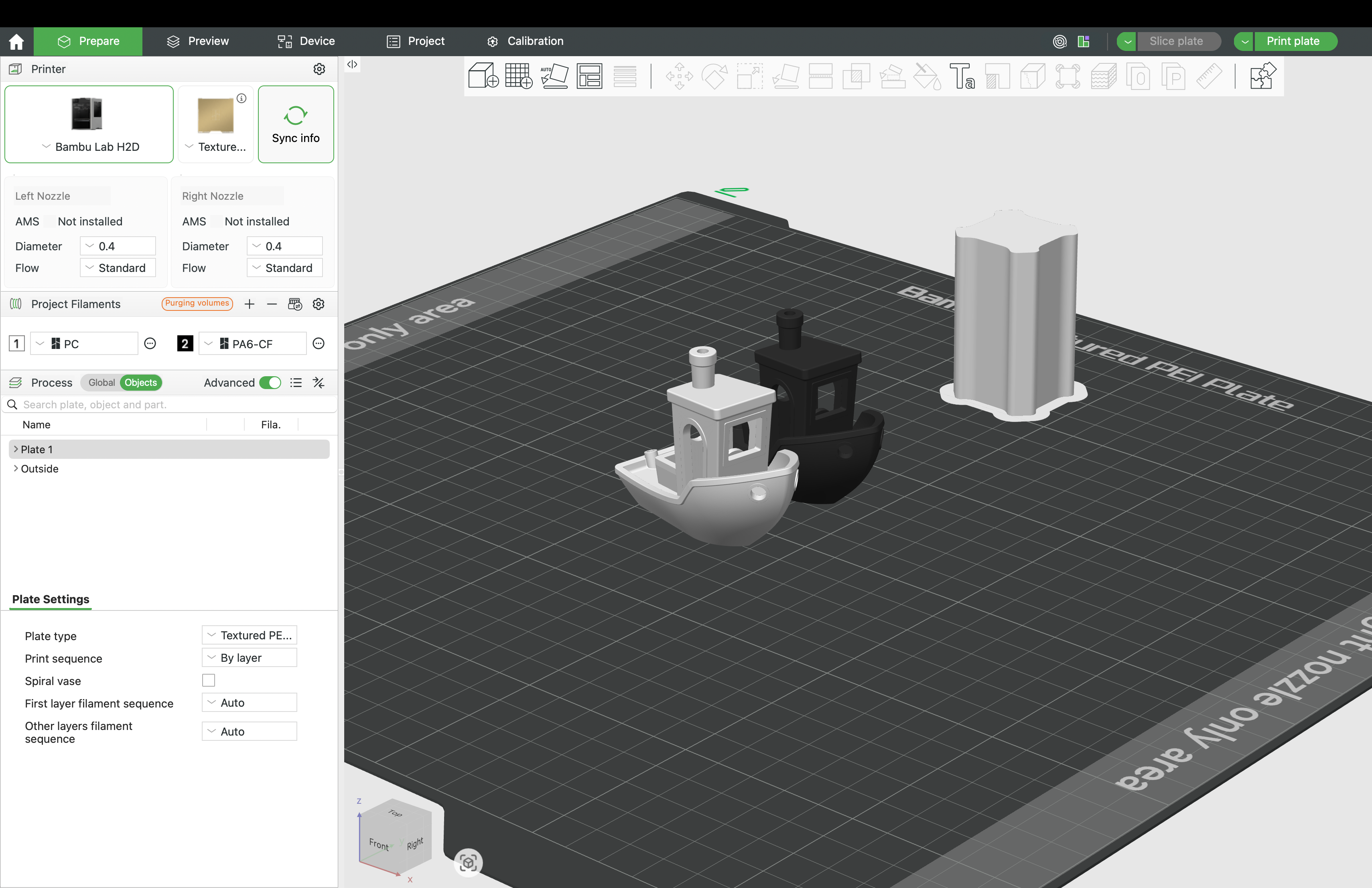 Multi-material printing allows you to Assess and Enhance prints that combine different material types, for example, PLA + PETG, or PC + TPU, in one project without having to split your project into multiple plates.
