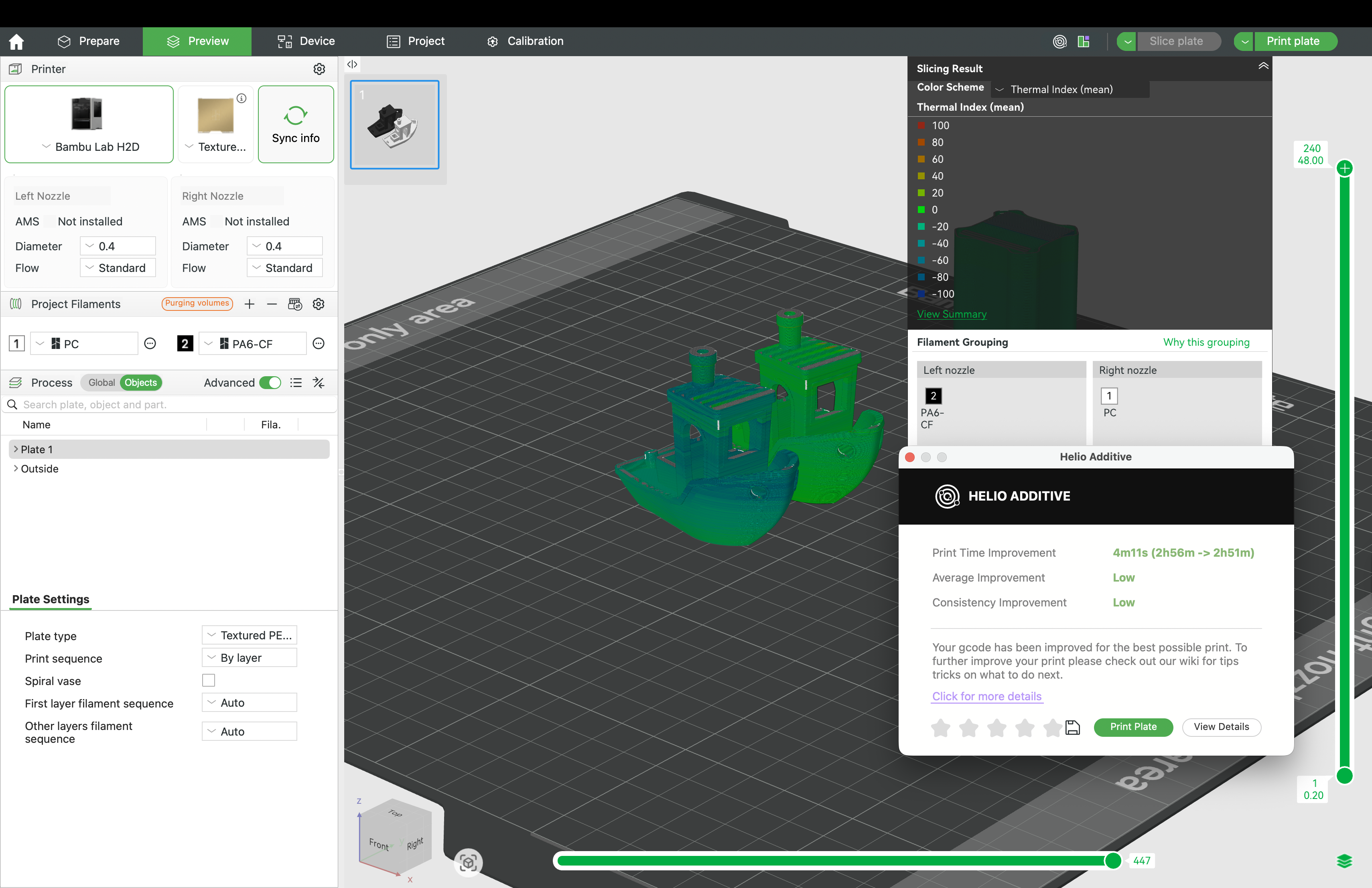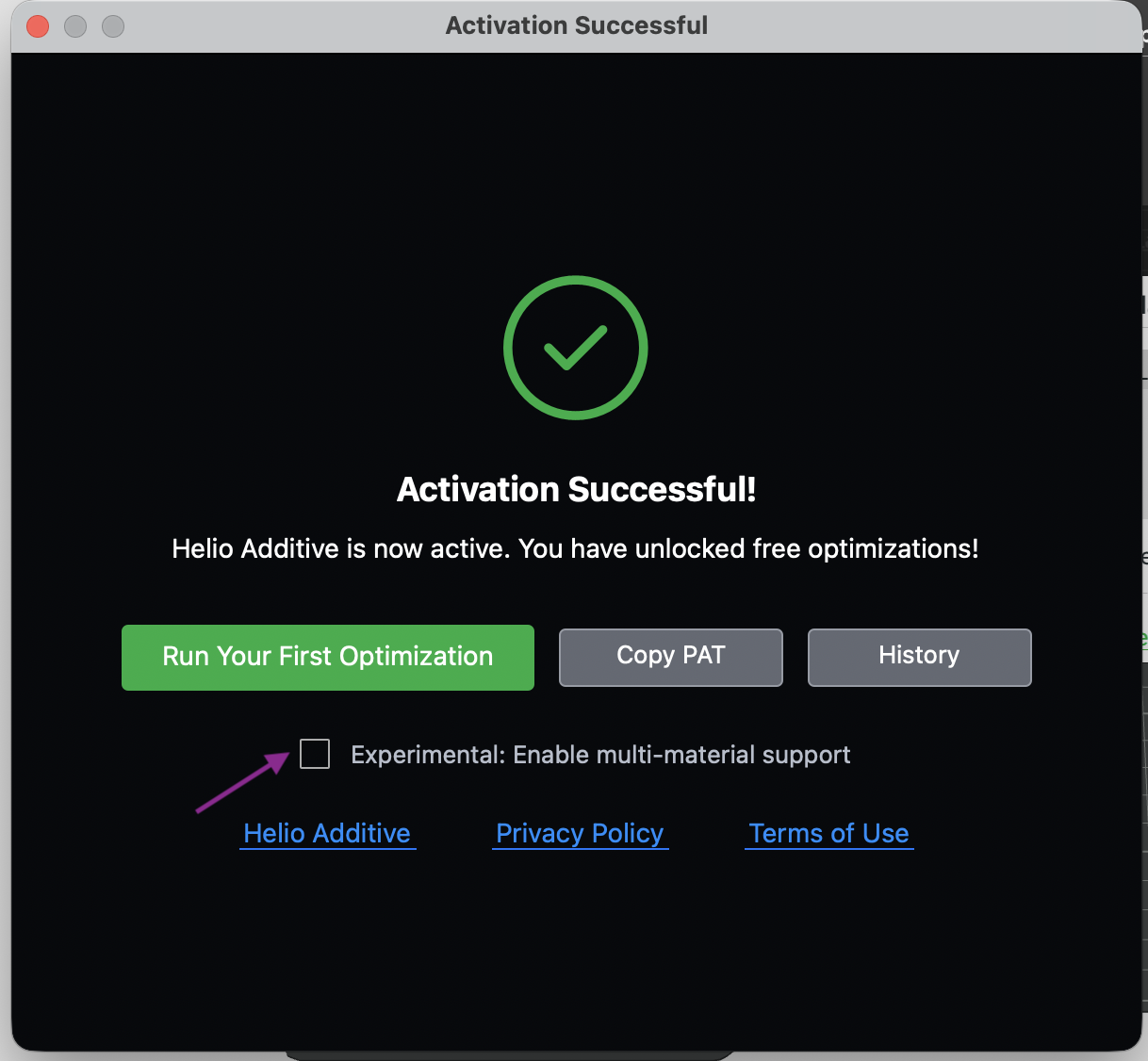 Multi-material support is currently an experimental feature. Results are functional but you may encounter edge cases. If you run into issues, let us know at support@helioadditive.com.