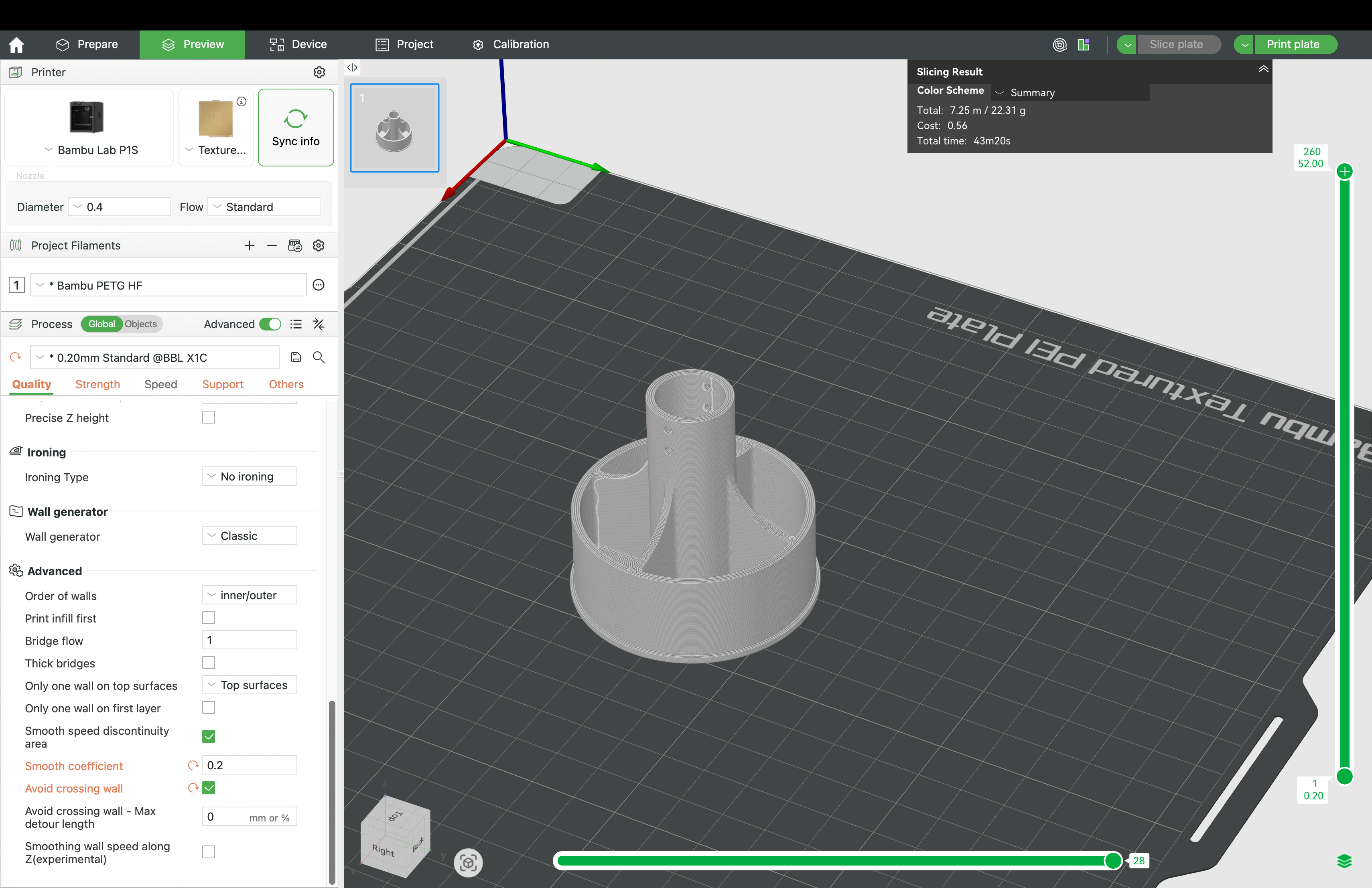 We sliced the model in Bambu Studio using the default PETG-HF profile to get a baseline for the original print time.